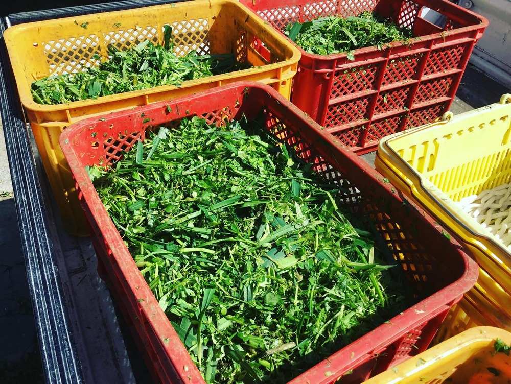 平飼い養鶏の毎日の日課でもある緑餌‼️