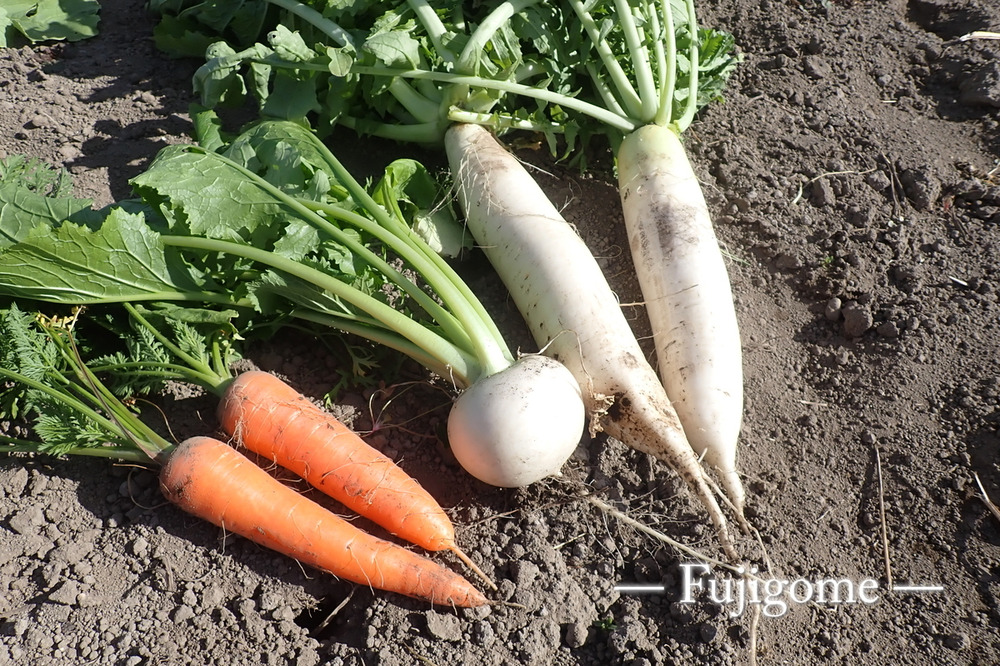 月ごとに内容は変動しますが、根菜・太ネギ・春菊・ほうれん草あたりが中心になりそうです。