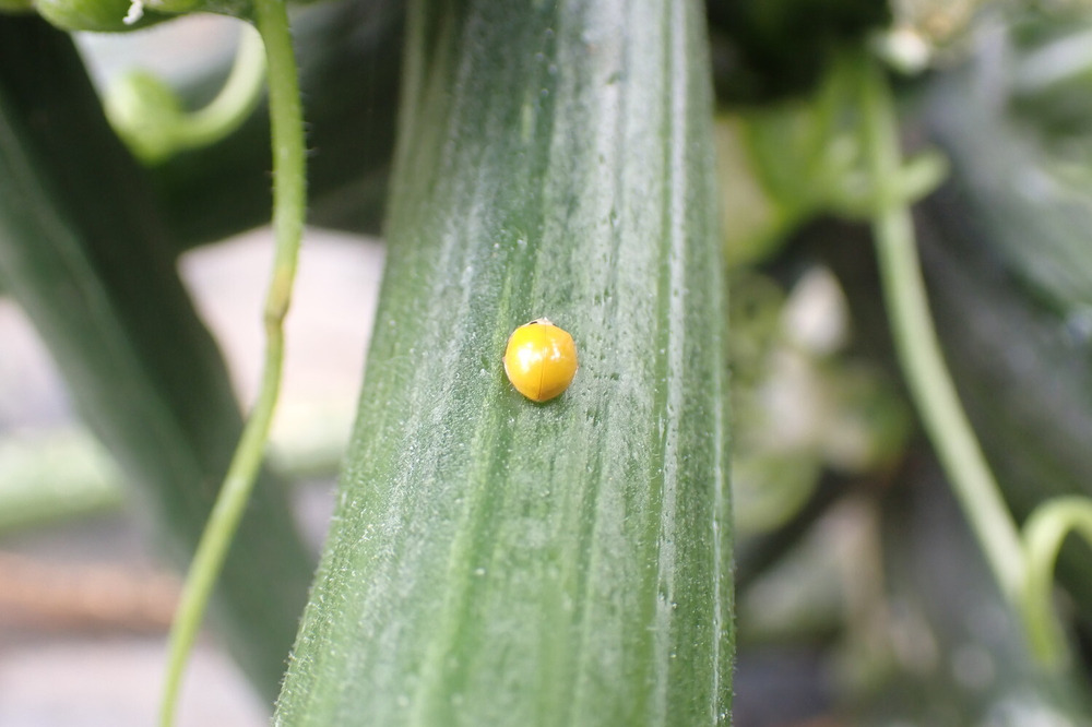 pic_3 黄色のテントウムシも発生中。ウドンコ病を食べてくれるカワイイ味方です。
