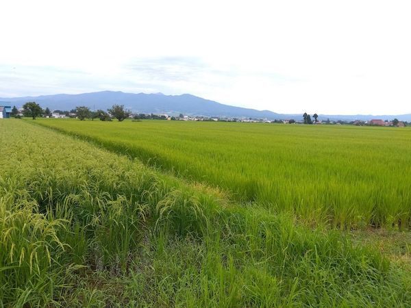 2枚目の写真の手前は五百万石、奥はコシヒカリ。