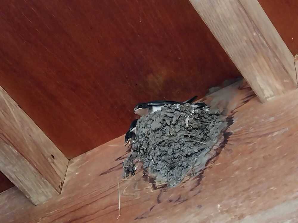 盆を過ぎ軒先のツバメのヒナは親よりも大きくなり巣立ちの準備をしています。