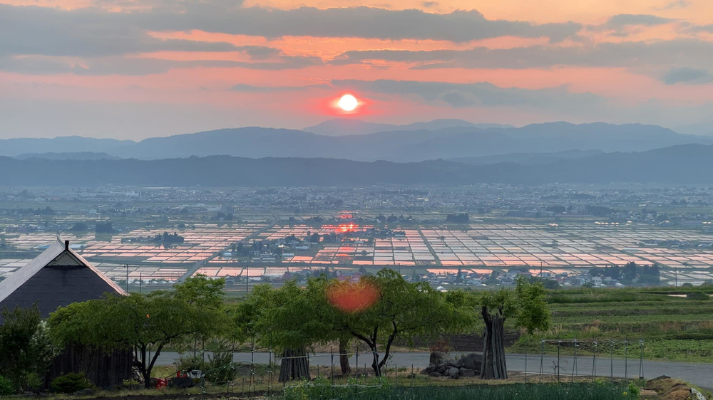 夕暮れ。田植が終わったその後に次の日の苗運びを行いその日の仕事を終えます。