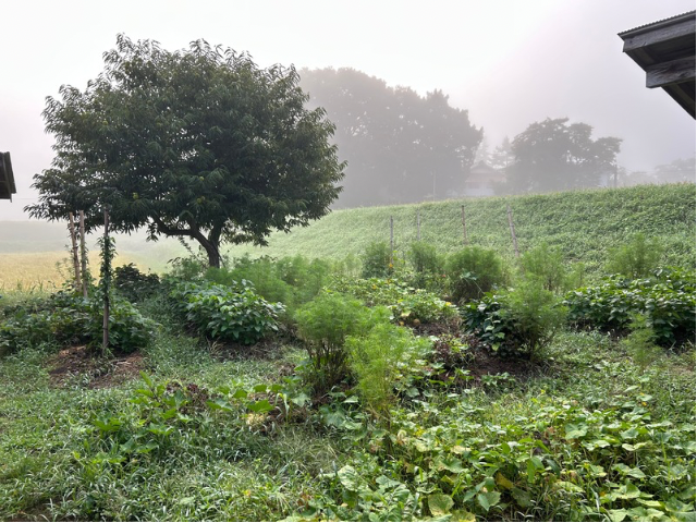 夏と秋のいいところを同時に味わえる季節ですね。庭の栗の木が朝霧の中で佇(たたず)んでいる姿が凛々しく見えた朝でした。