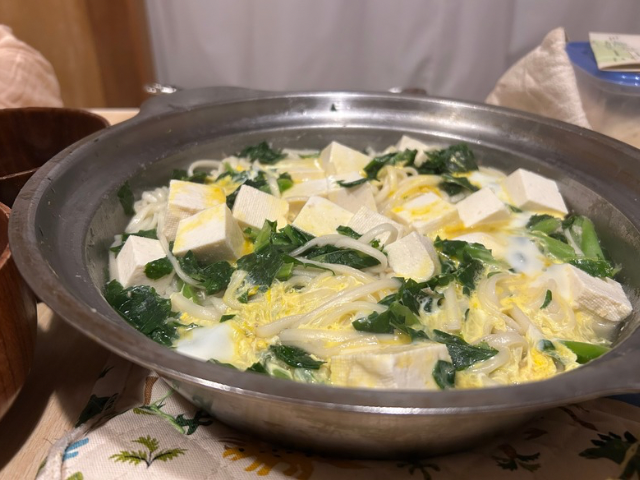 少し遅めの朝ごはんに、野菜たっぷりの優しいうどんが、いっそう嬉しい季節。