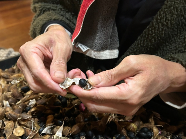 小豆や大豆の選別をしながら、ご縁に感謝するとともに冬の間、眠りにつく畑を想像します。この土地が私たちに贈ってくれた物語ですね。