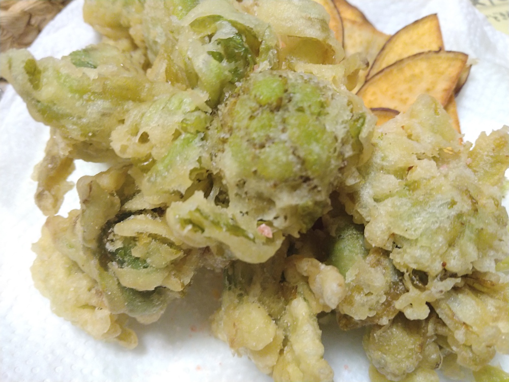 少し採れたので、今年初物は我が家で天ぷらにしました。