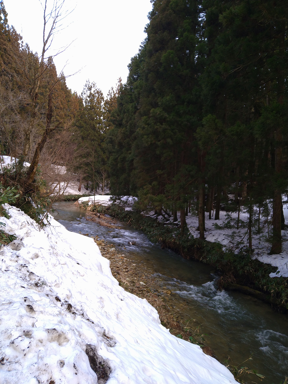 比較の画像がなくてわかりづらいですが、山の雪どけが進み、近くの小さな川も水の量が増えています。