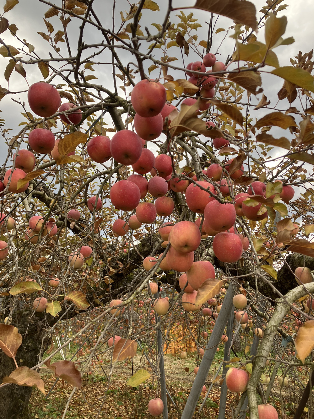 さて写真は、今日のサンふじの様子です。樹齢も80年位なる、登園で1番デカくて古い木です☺️今年もいっぱいのりんごをならせてくれました‼️すごいなぁ♪自分の倍以上生きてて、こうして今だに現役バリバリなんですから笑