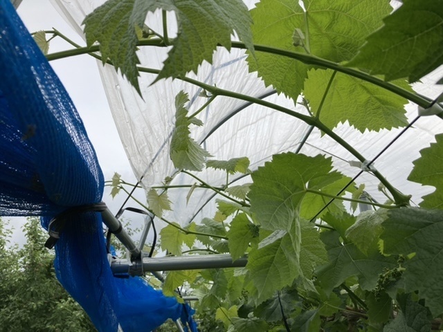 ぶどうの枝もぐんぐん伸び、誘引作業に追われています!😄順調に生育しています!花もどんどん大きくなってます♪