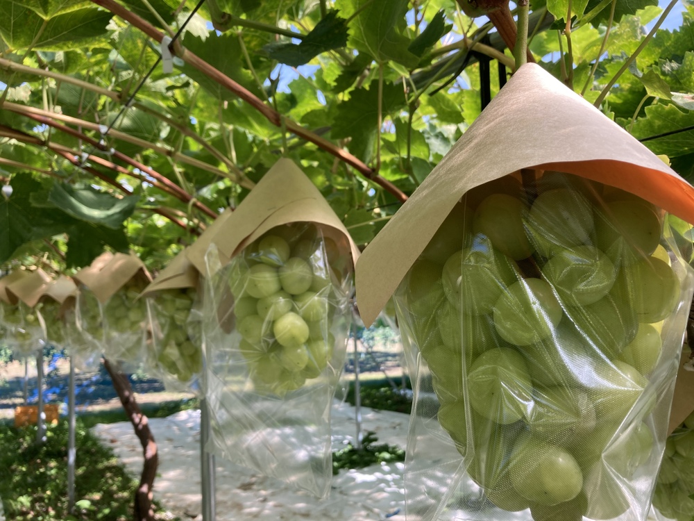 雄宝は粒肥大が良く皮が薄いため、例年以上に裂果したのがたくさんでて、これまで3回袋開けて割れた粒を抜いています笑