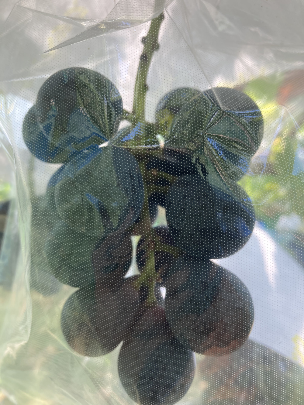 ぶどう栽培技術向上のために植えたのでら栽培本数と樹齢的に、房数少ないですが、美味そうなぶどう🍇になってくれました♪
