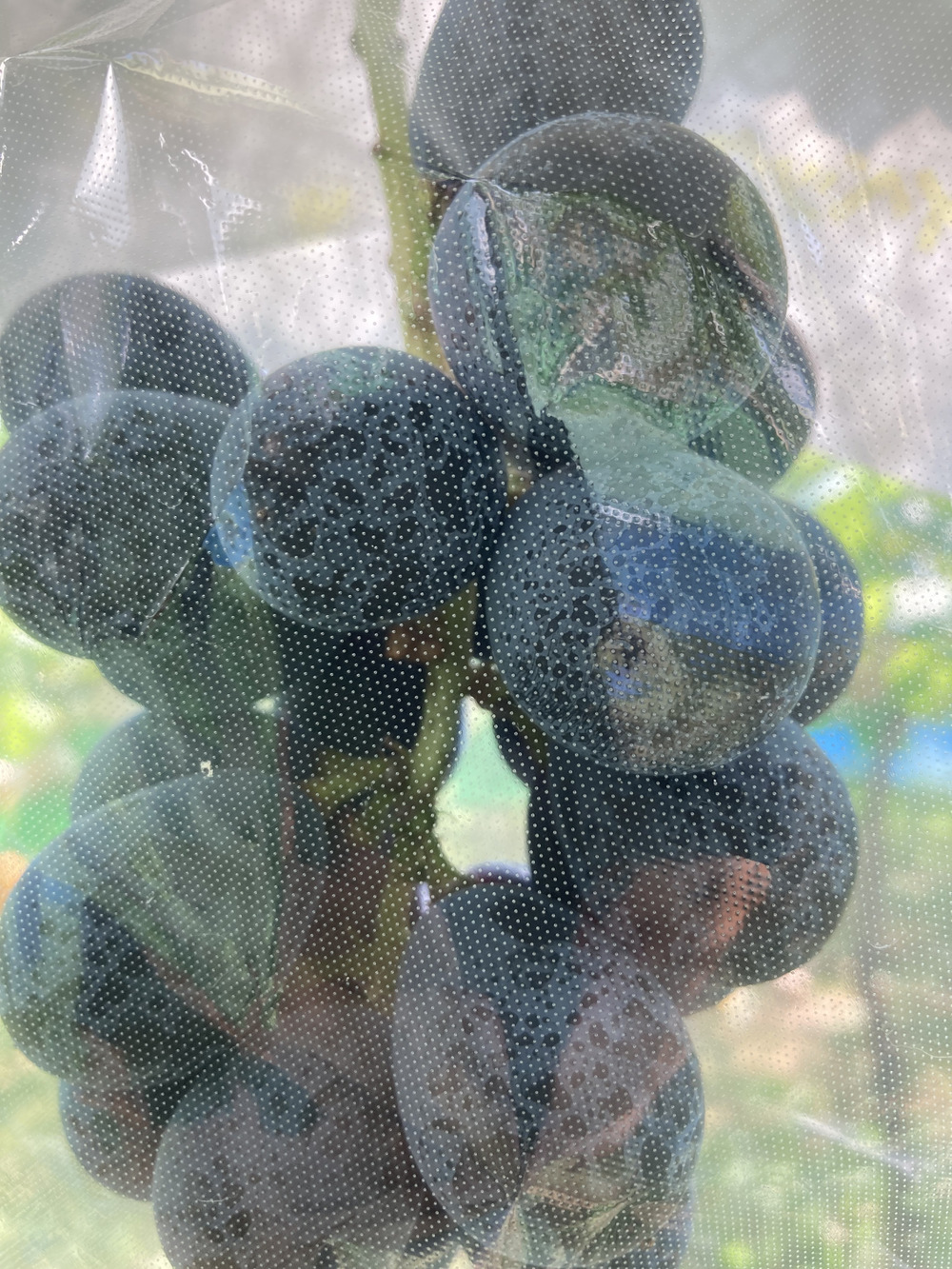 ナガノパープルは、非常に栽培が難しくて、裂果対策に灌水や房数調整しないと、裂果祭りで、大変なことになるぶどうです笑 割れた粒もある房もありますが、結構いい感じに来ていると思います😆