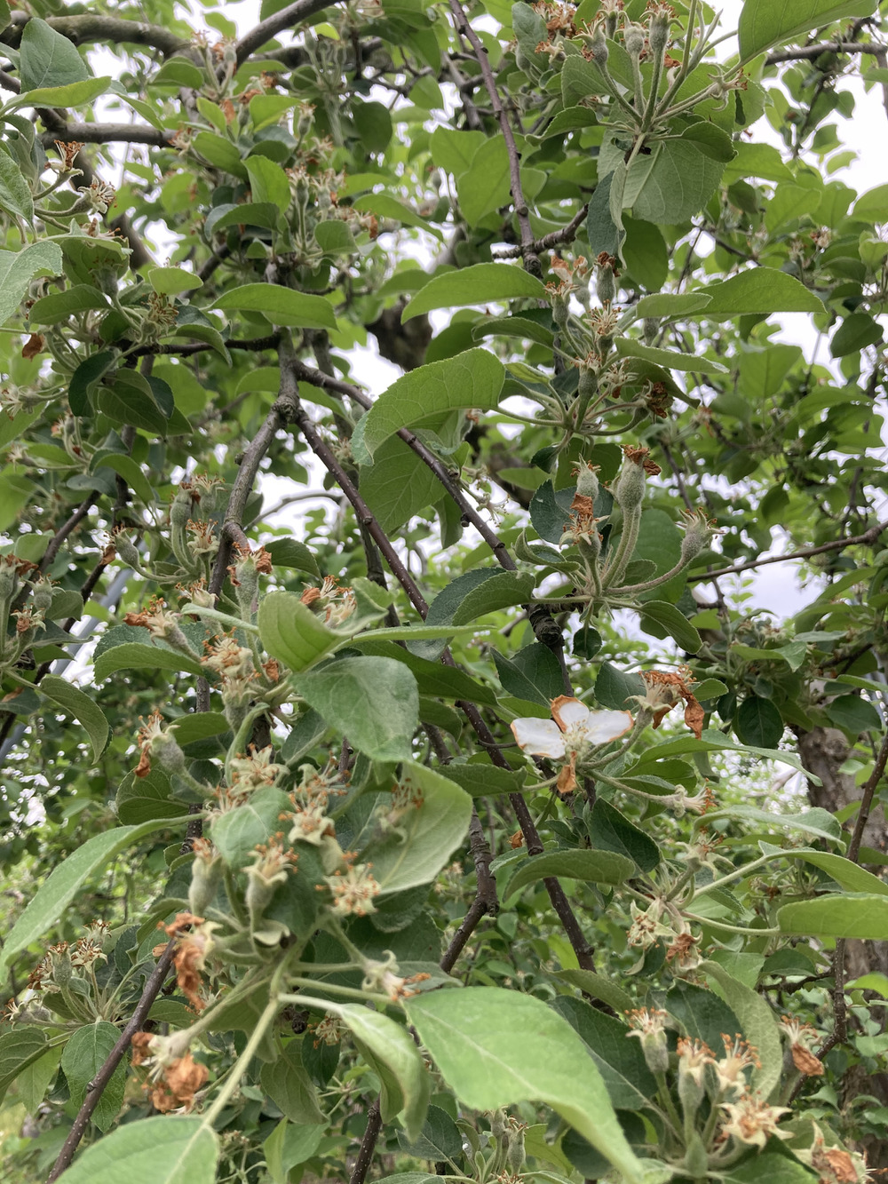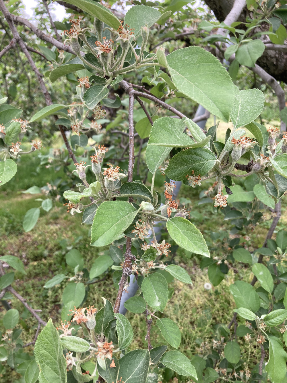 昨年は霜害で、かなり大変な年になりましたが、写真のように子房が膨らんで、りんご🍎の赤ちゃんがわかるようになって来ました‼️