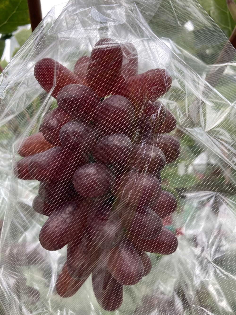 こんにちは😃いよいよクイーンセブンが収穫時期を迎えました‼️いい感じに着色も進んで、美味そうです♪