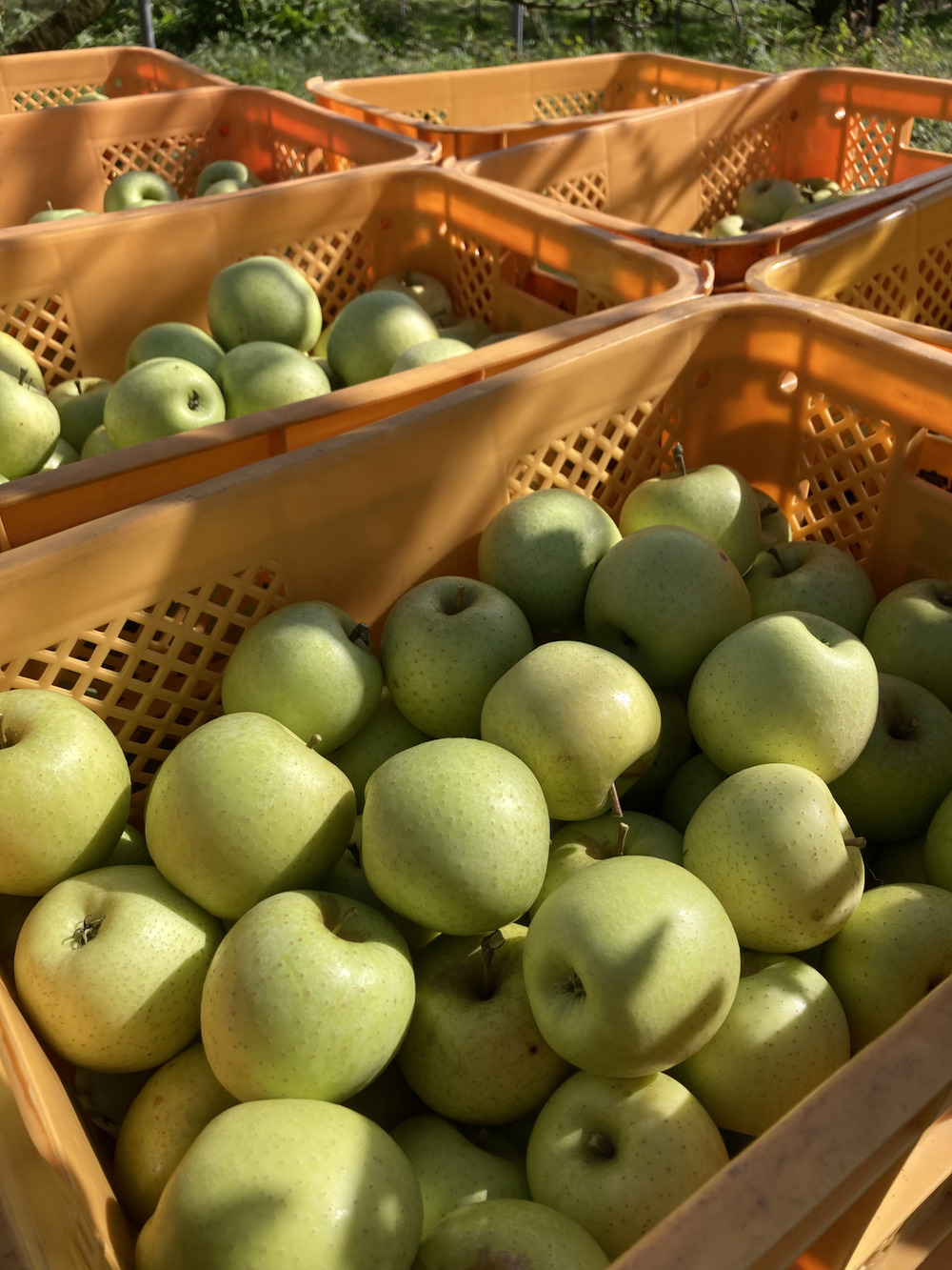 こんにちは♪今日から王林収穫始めました‼️水曜日から☔️予報なのと、王林は熟すと生理落下し始めて来たので、丁度良いタイミングだと判断して、収穫始めました😆
