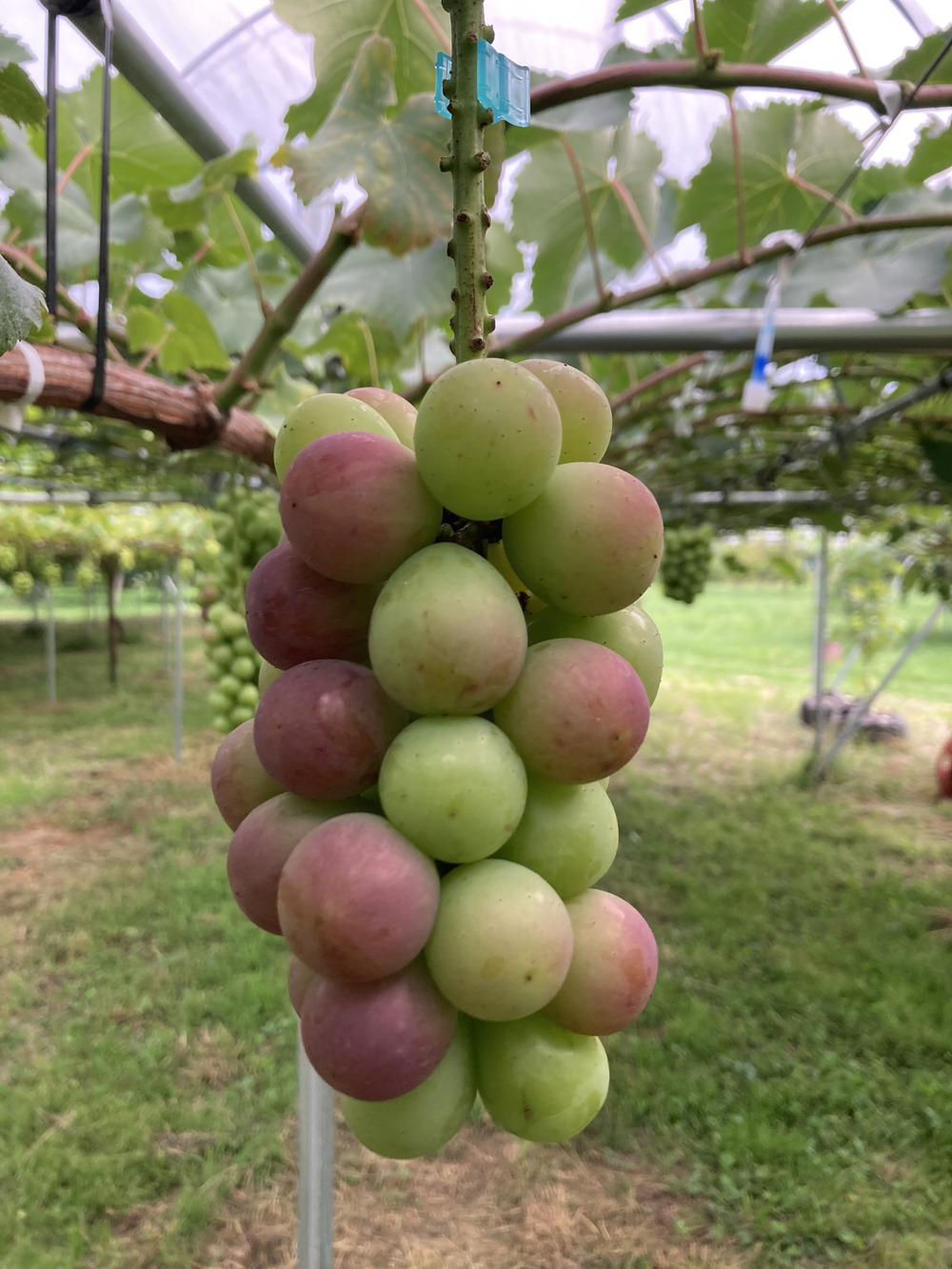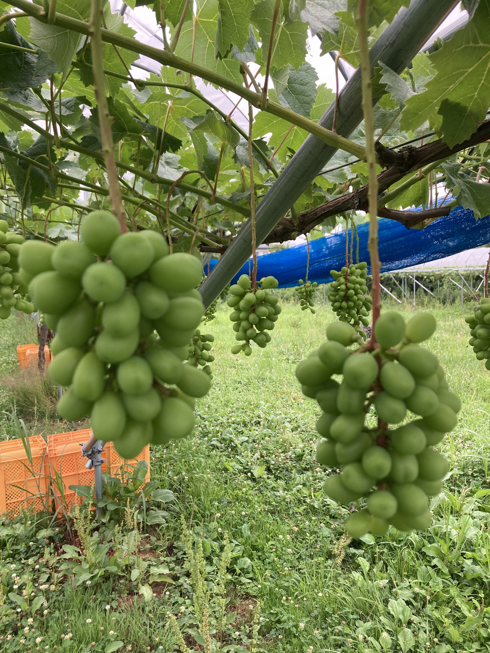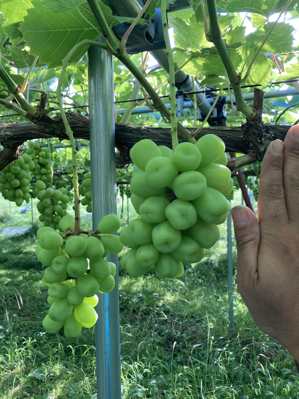 あと4ー5日で満開30日なるのですが、そうなると摘芯や摘房ができない時期になるので、今日から不要な枝をばんばん切る摘芯作業を始めています❗️同時に、ならせ過ぎはダメなんで、房数や大きさ、枝の元気さなどを見て、もったいない気持ちを抑えて、摘房をしています😆