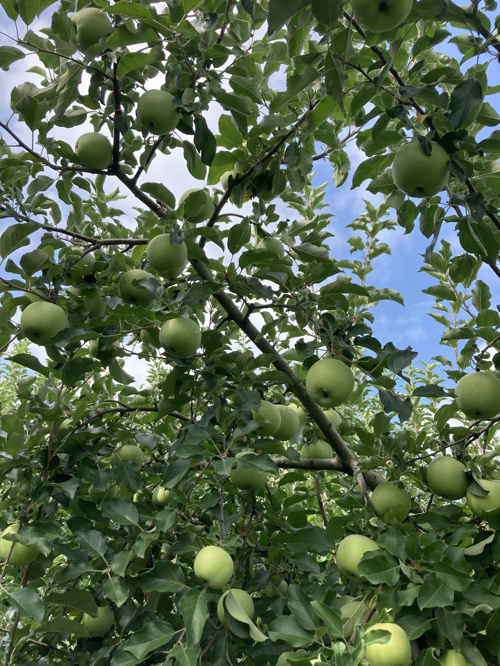 写真のりんご🍎の木は、樹齢75年位なった大木老木ですが、今年も、立派なりんごをたーくさん実っています♪
