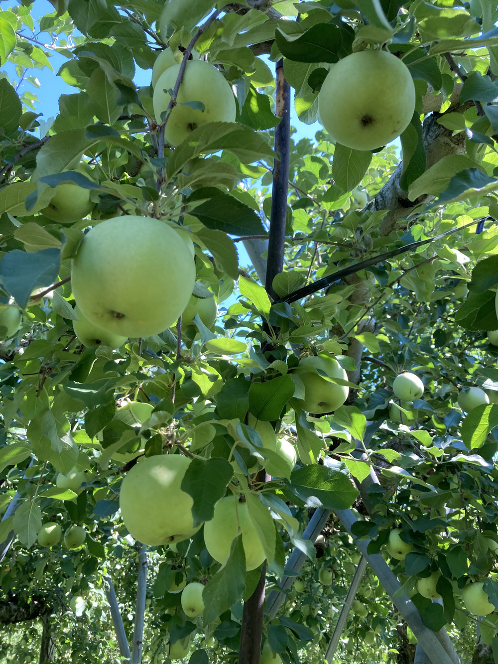 しかし、当園ではまだ、10aあたり、300リットルで、これまで9回までに削減しています‼️ しかも通常より1.5から2倍薄くしています。そのために、極力農薬散布を減らす様に、通風採光をよくしています❗️ 縮間伐をして、樹勢も強すぎず弱すぎずに調整して、病害虫が出ないように、かなり神経を使って管理しています笑 7ー8月にかけて、徒長枝を樹勢みながら切ったり残したりして、樹幹内部の通風採光を調整したのも良かったかと思います😄