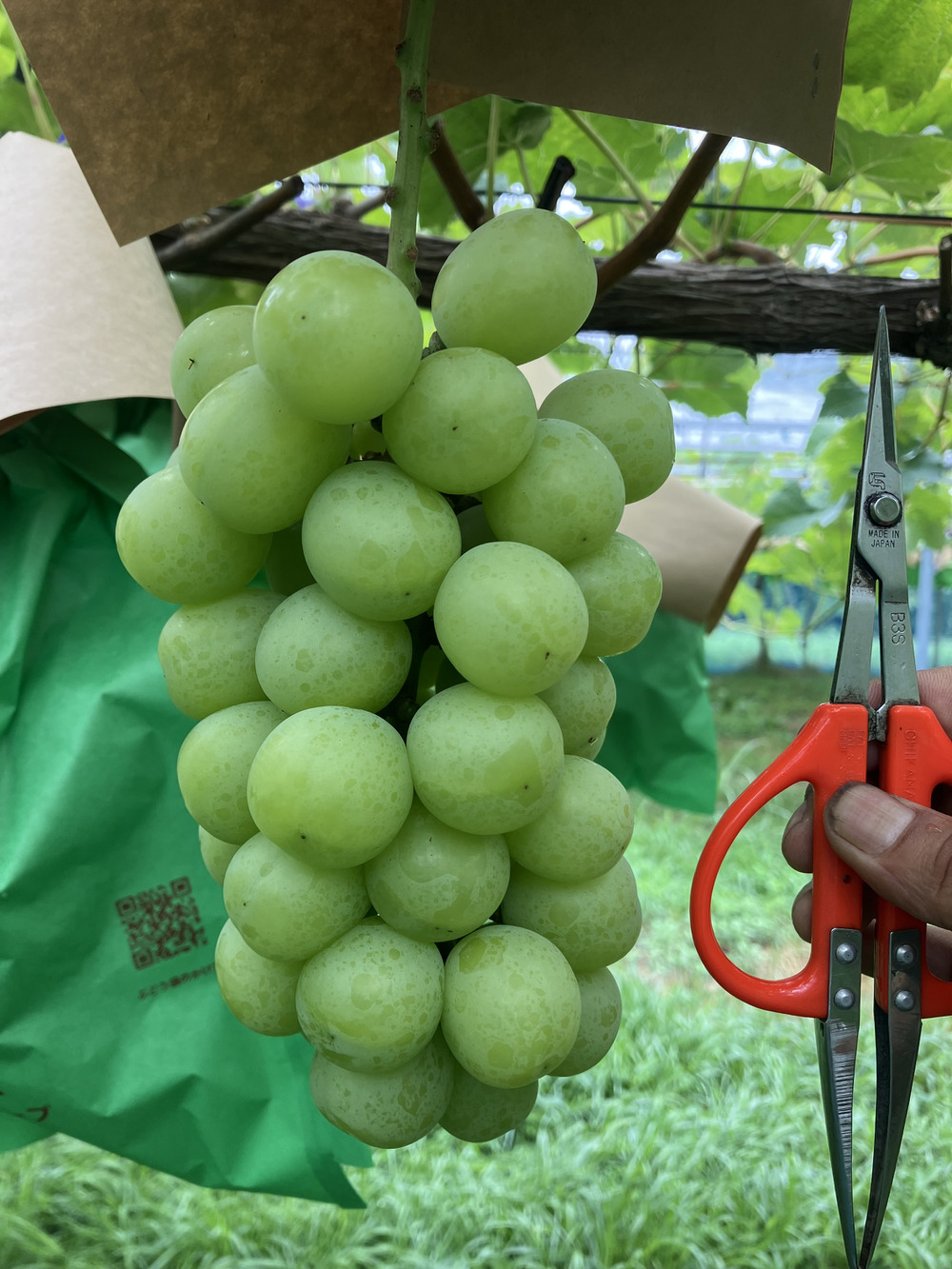 クイーンセブンには、7月の大かんばつがプラスになったようです笑 8月10日前後の約1週間降った☂️で若干裂果したり、ひびが入った粒が散見される房がありますが、許容範囲かと思います☺️