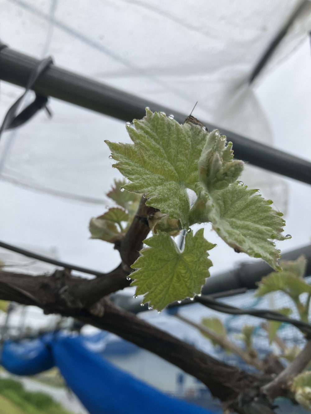 こんばんは♪4月終わりに芽吹いたぶどうの枝がぐんぐん伸びて、現在、番線にくっつける誘引作業を急ピッチで行っております!