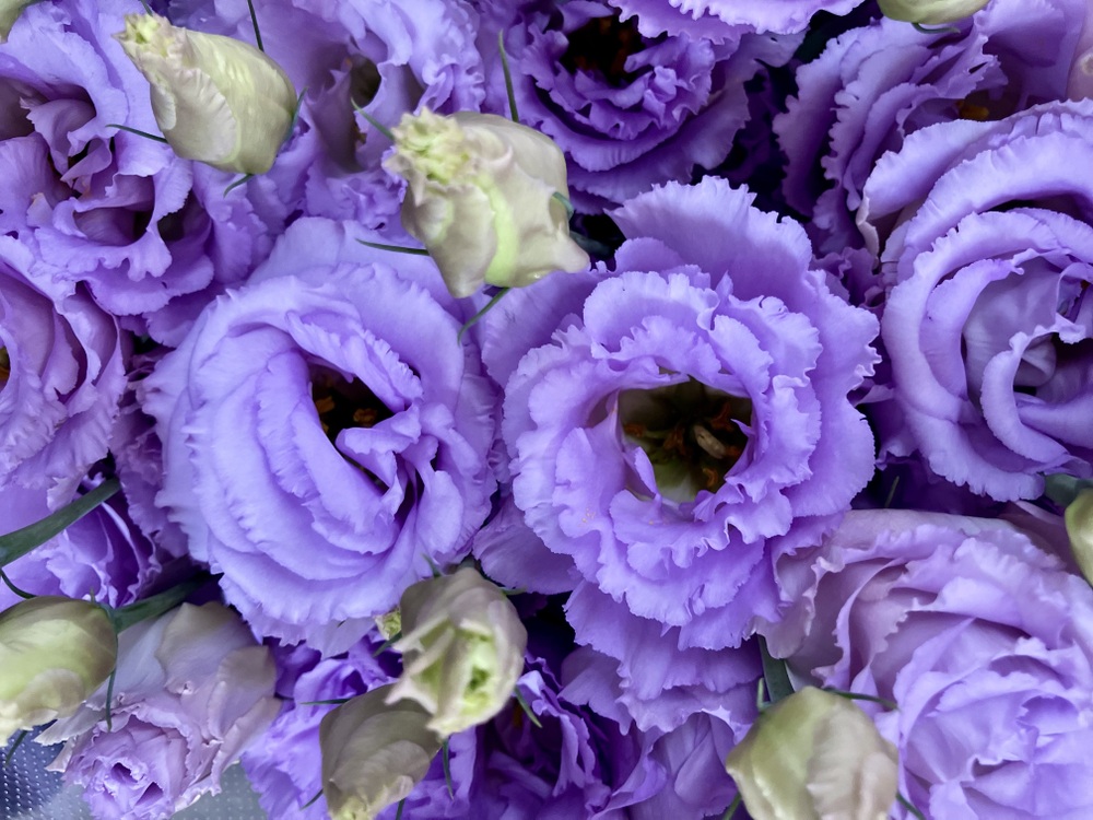 パープルやグリーン、ホワイトと梅雨らしく涼しい色合いが多くなっております。