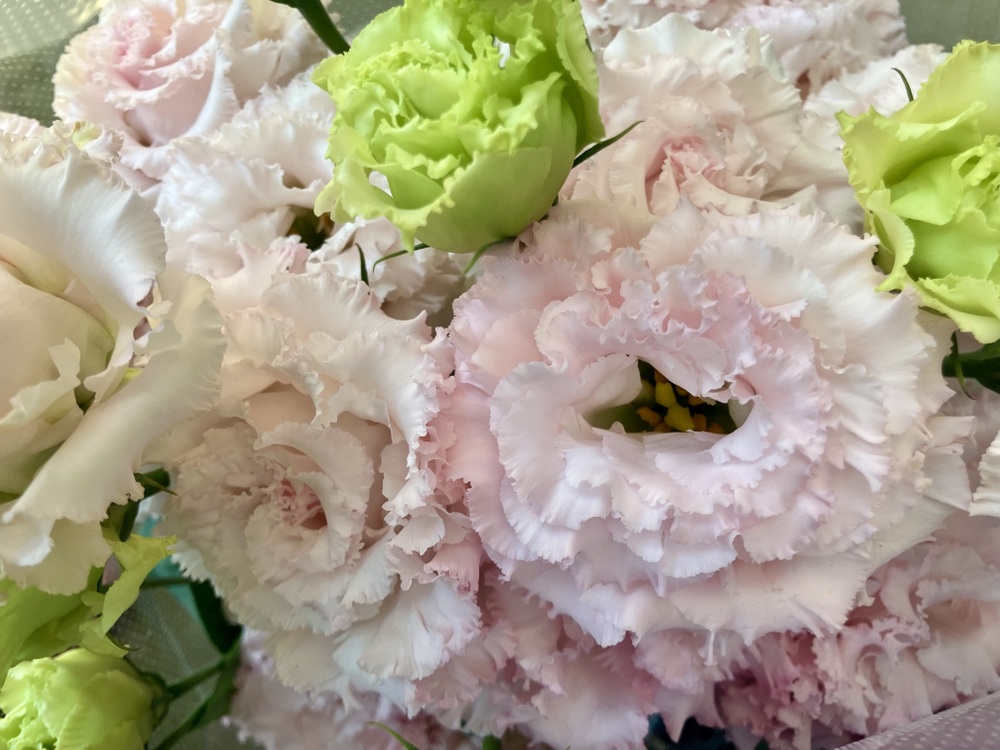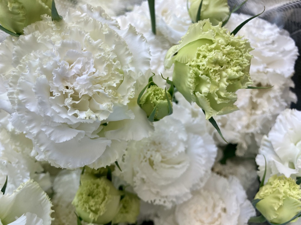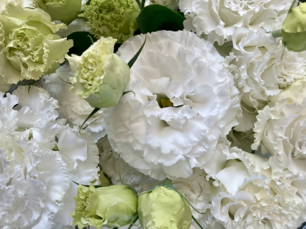 変わらずラベンダーがメインとなっており、ホワイト、ピンクと色鮮やかな時期となって参りましたので、短い花束を解禁しました。ぜひご検討ください。