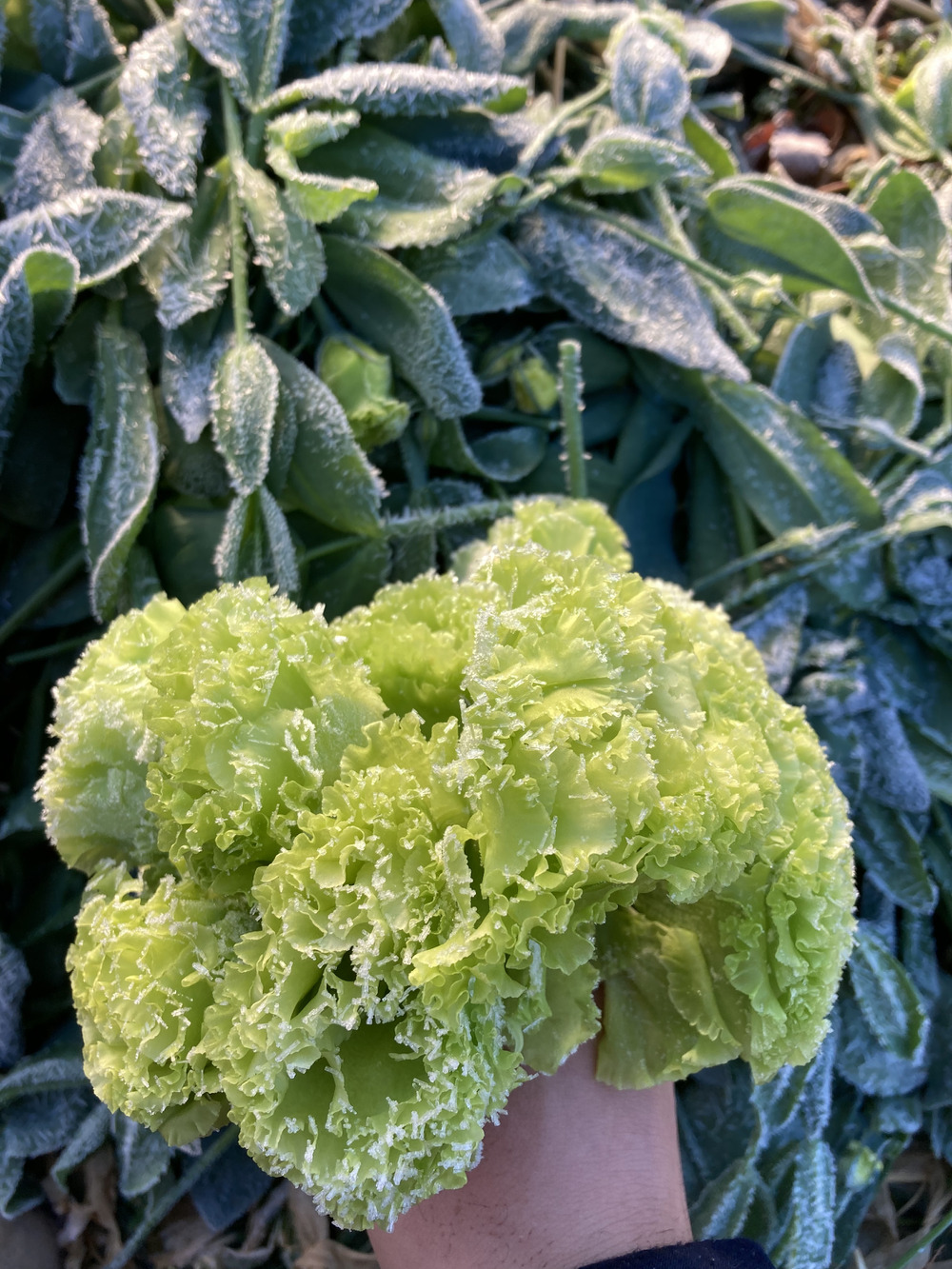 朝は大変寒いもので、昨日良い花束を作るために、捨てたお花がカチコチになって、「フローズンフラワー」になっていました。