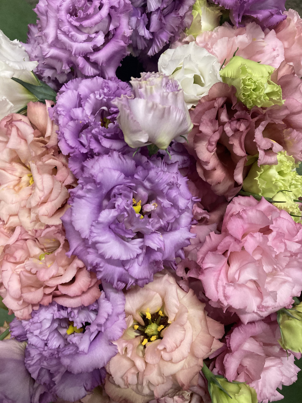 先週と比べるとピンクの品種が短い花束におりてきております。