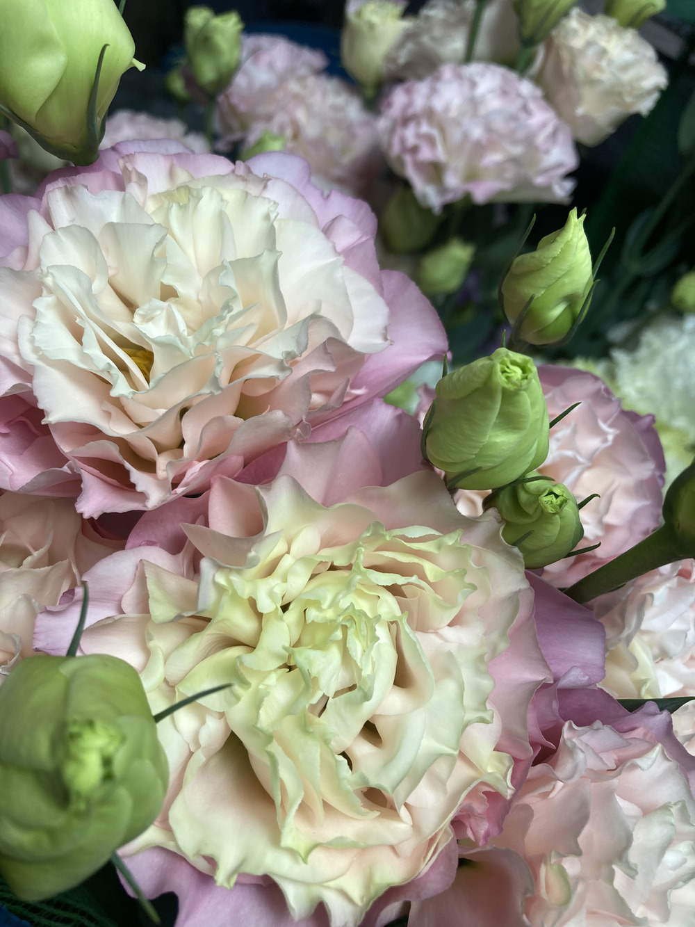 引き続きふわっとした花びらが出てきています。そのなかでもラビアージュというピンクと白がカラフルに出ている大輪の品種が人気となっています。