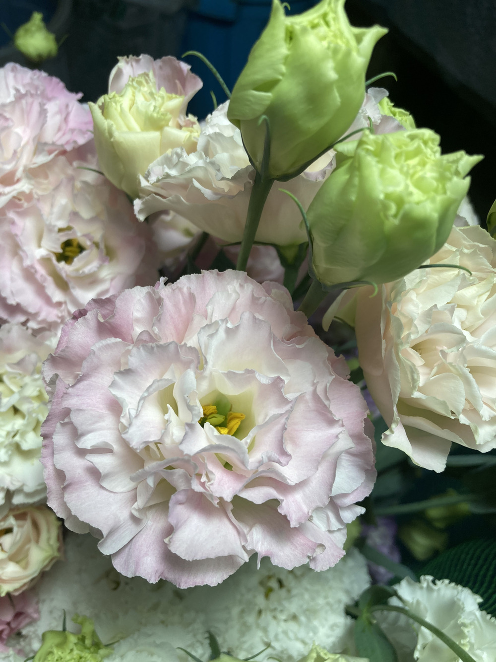 引き続きふわっとした花びらが出てきています。そのなかでもラビアージュというピンクと白がカラフルに出ている大輪の品種が人気となっています。