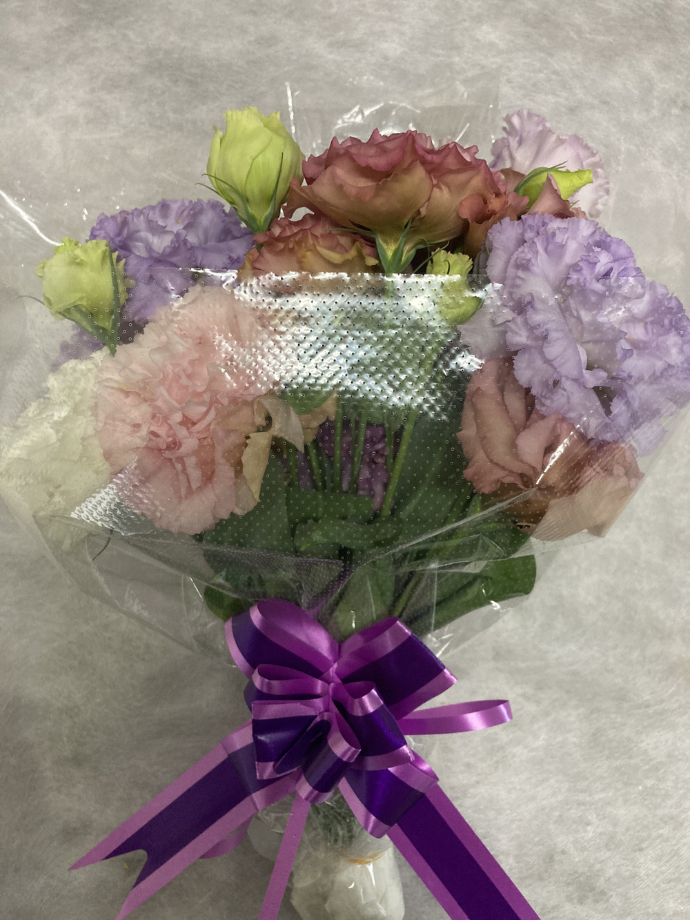 先週と比べるとピンクの品種が短い花束におりてきております。