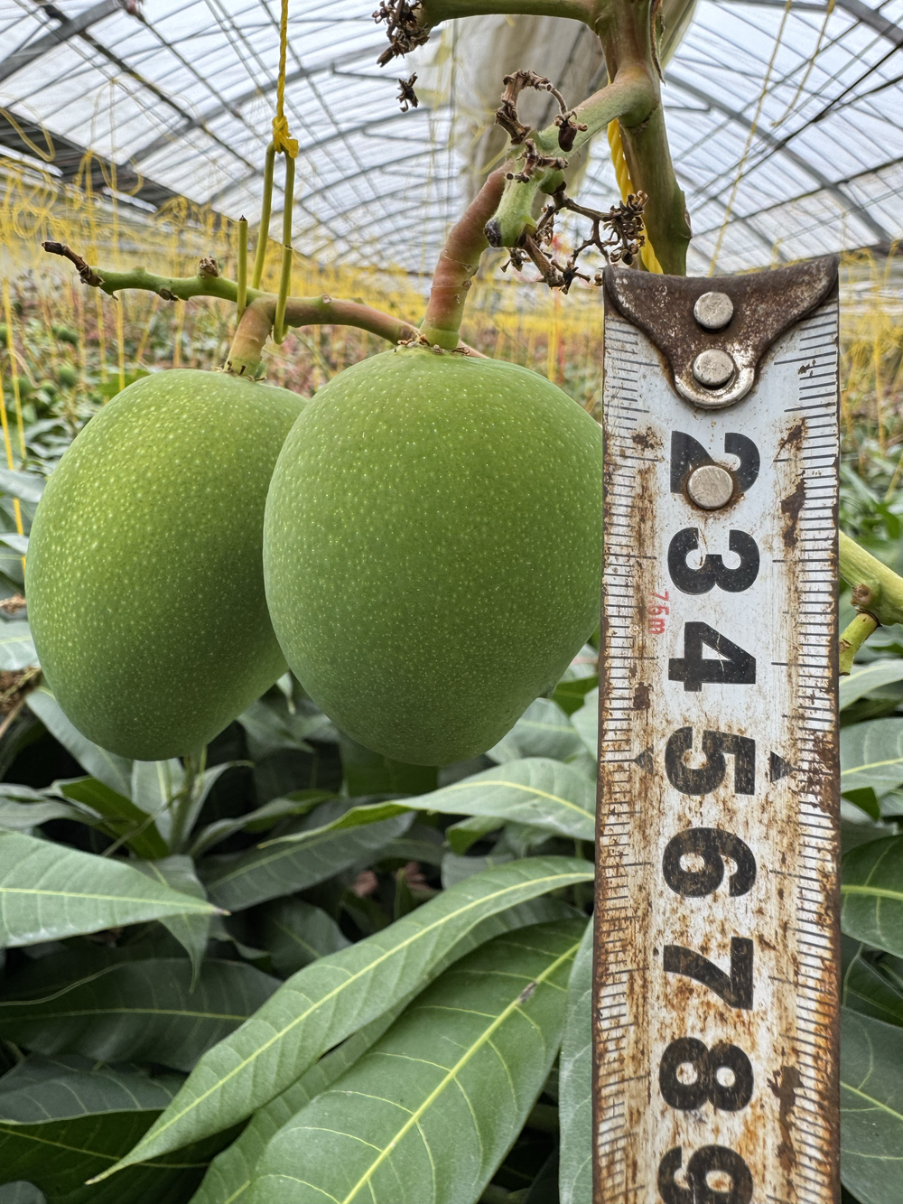 さてマンゴー🥭ですが、花も落下し、ハチさんたちのお陰で受粉してくれました。現在は摘果作業を実施しているのですが、これが迷うんですよ、どれを切り落とすか。まさに、自分との戦い。形・日照位置・太り具合、これらを考えながらするのですが、どれも残したい気持ちになってくるんですよね。厳選した一個を皆さんにお渡しできる日を楽しみにしております。写真は、金蜜の品種です。そろそろ一個に残したいのですが、皆さんだったらどちらを残しますか?