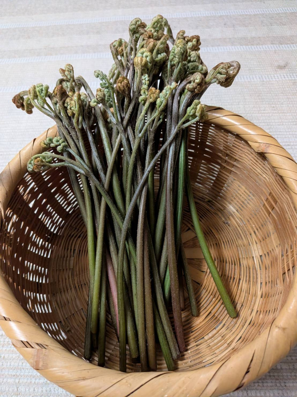 蕨と芹が手に入ったので、山菜おこわを作りました。