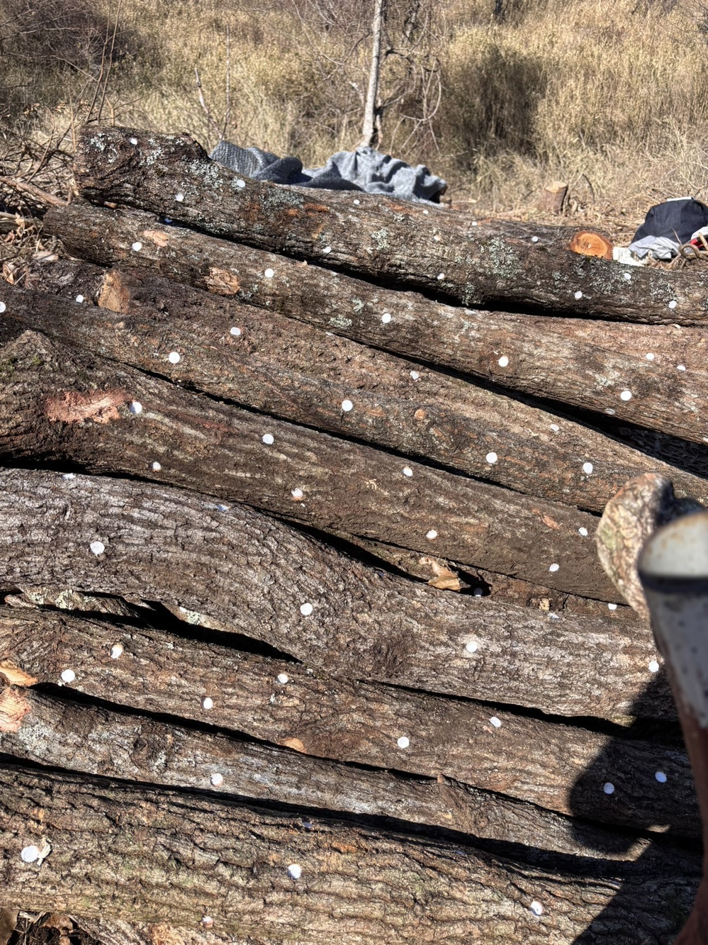 農家なのに、重機🏗️が登場しちゃうくらい原木栽培はとにかく重くて重労働ですし、コマ打ち(種の植え付け)から収穫までには年単位の日数が掛かります。