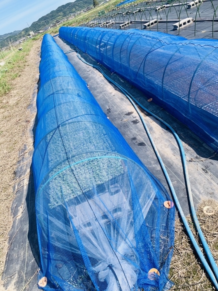 昨日は野菜の苗を育てている苗床に防風ネットをはってきました。