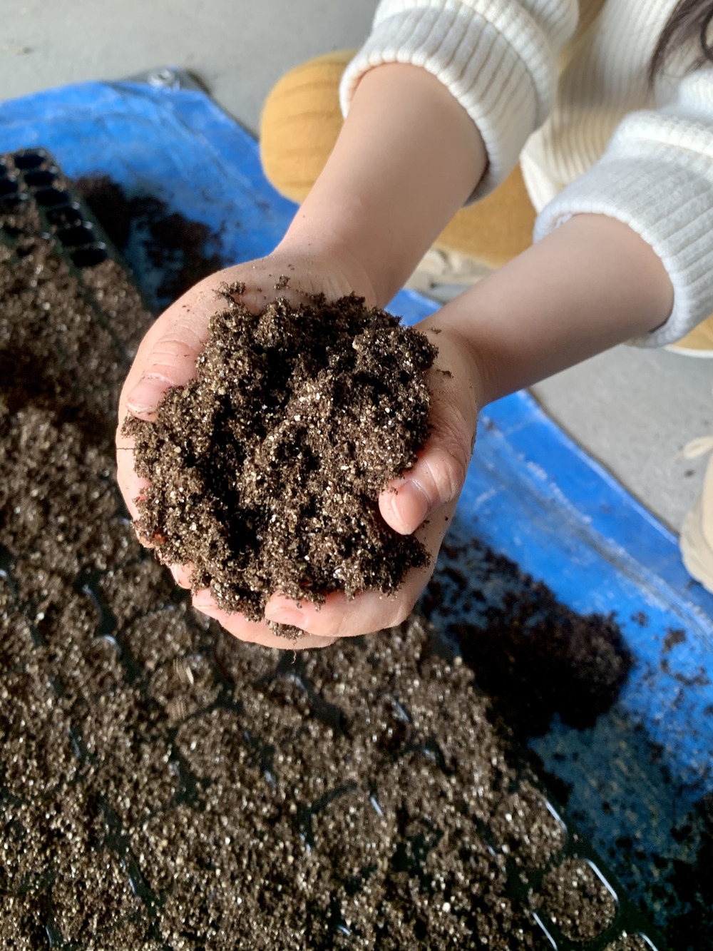 週末は4歳の娘もお手伝い。種まきの一連のおしごとは手慣れたもので、小さい手ですがなかなか頼りになります:)