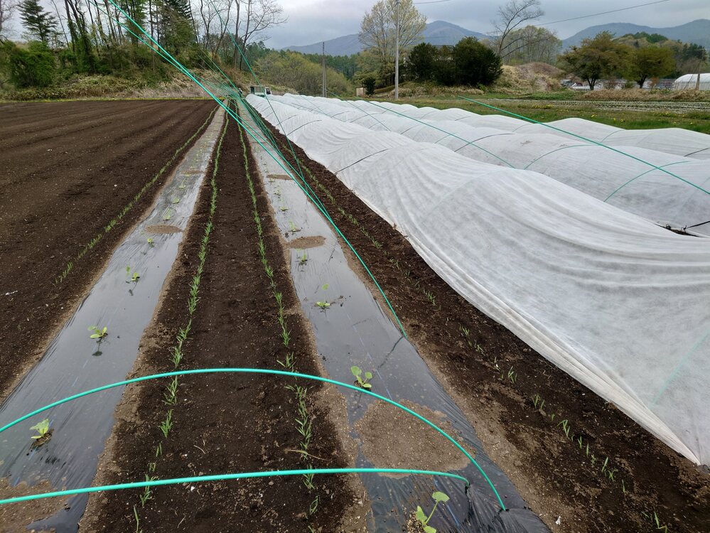 まだまだ霜の心配があるので不織布でトンネルしました。