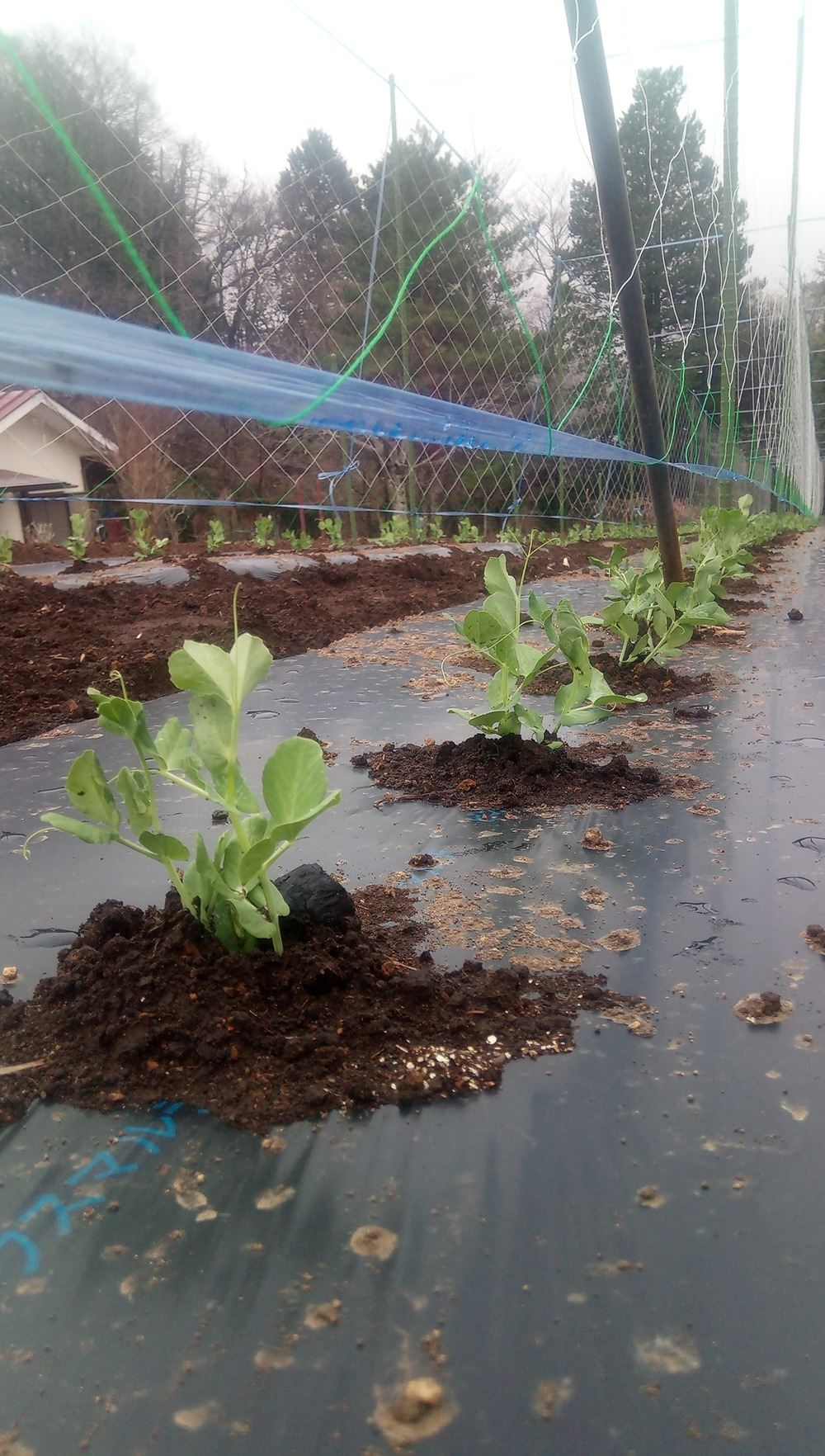 スナップエンドウは暖地だと冬越しさせて育てますが、この辺は寒冷地なので寒すぎて冬越し出来ません。なので春早くにハウスで苗を仕立てて露地に植えてから寒さにあてて、冬越ししたと勘違いさせる事によって順調に成育してくれます(゚∀゚)