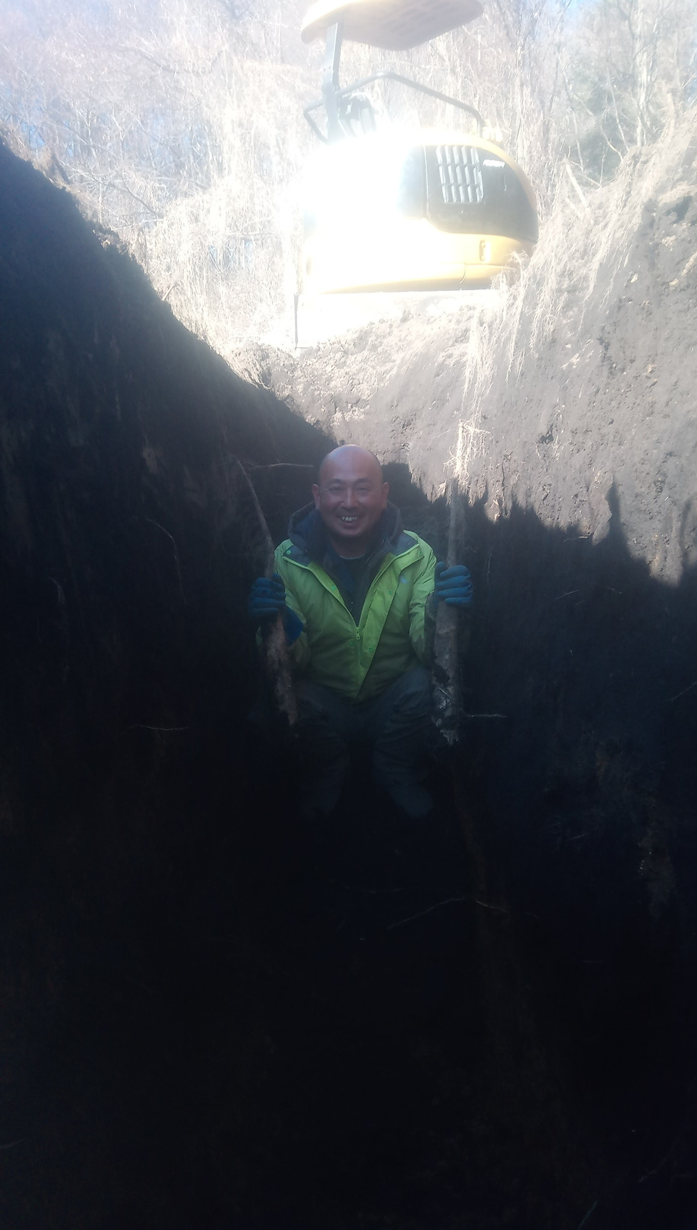 写真は頼りになる相棒100人力の三菱MM30CRです、めちゃくちゃ働いてくれます。そして1犬力のクック、結構土掘ってます(関係ないところw)最後に一番頼り無い、生産者でした。