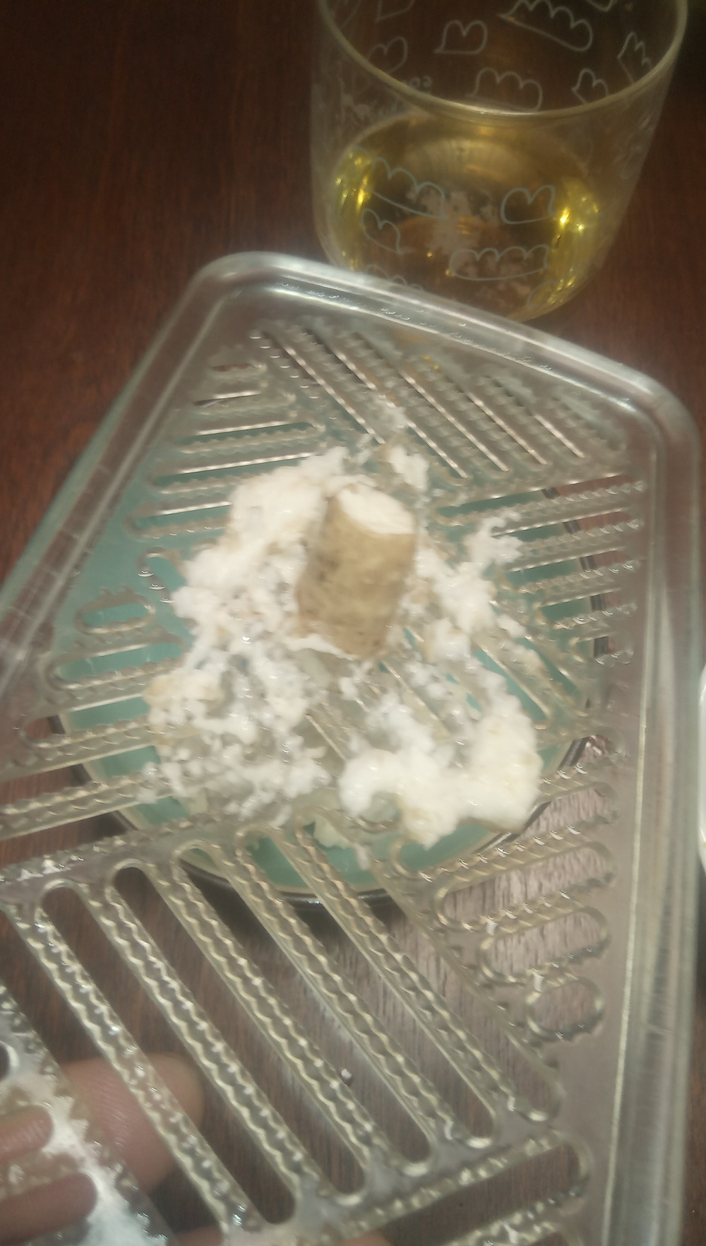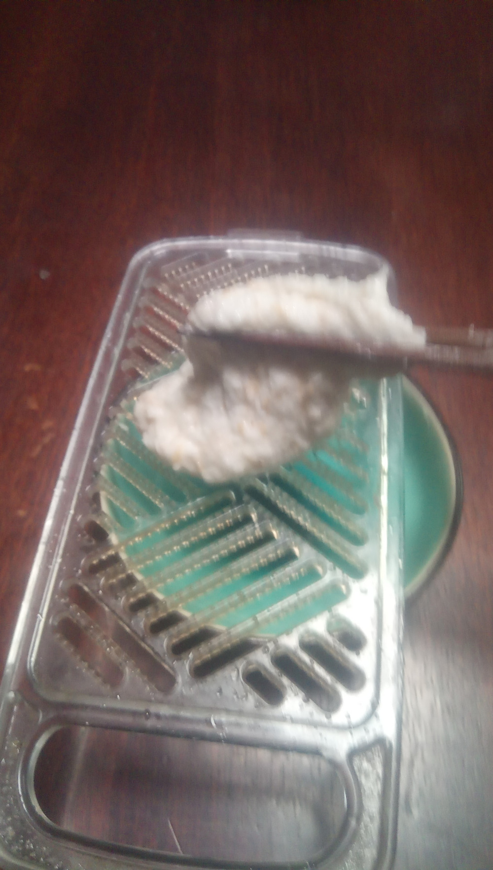 2、おろし器でおろす (おろし器にひっ付いた分は、おろした自然薯でペッタンペッタンすると綺麗に取れる)