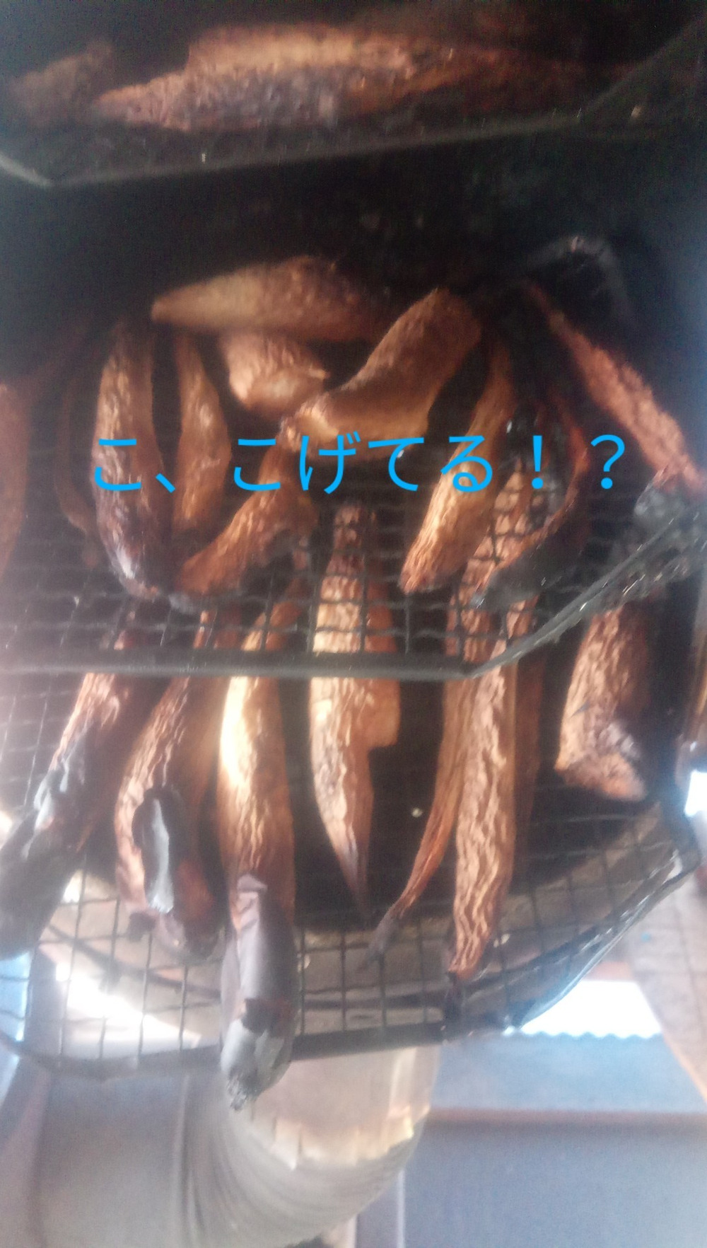 大きい大根は干して、小さ〜い大根が燻製機に入りそうだったので「いぶりがっこ作ろう!」と思い燻製してる間にちょっと出かけてしまったら温度が上がりすぎて「こげたがっこ!」とゆう新しい料理を作ってしまう所でした😝