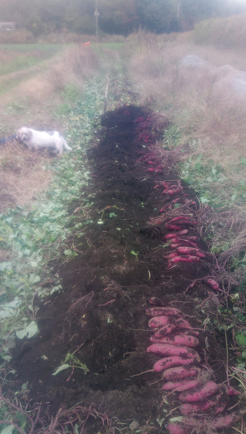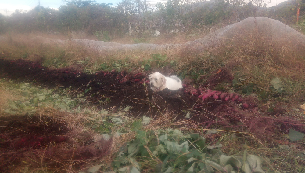 今日は霜が降りる前にと一生懸命サツマイモを、掘っております、クックはモグラさんかネズミさんを掘っております^^;