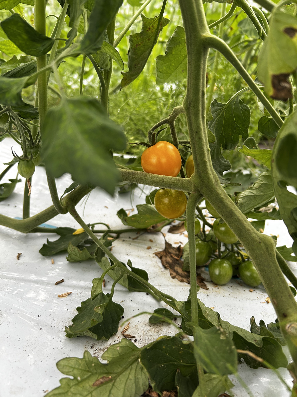 またミニトマトは昨日の様子になりますが、こちらも少しずつ色づいてきました。