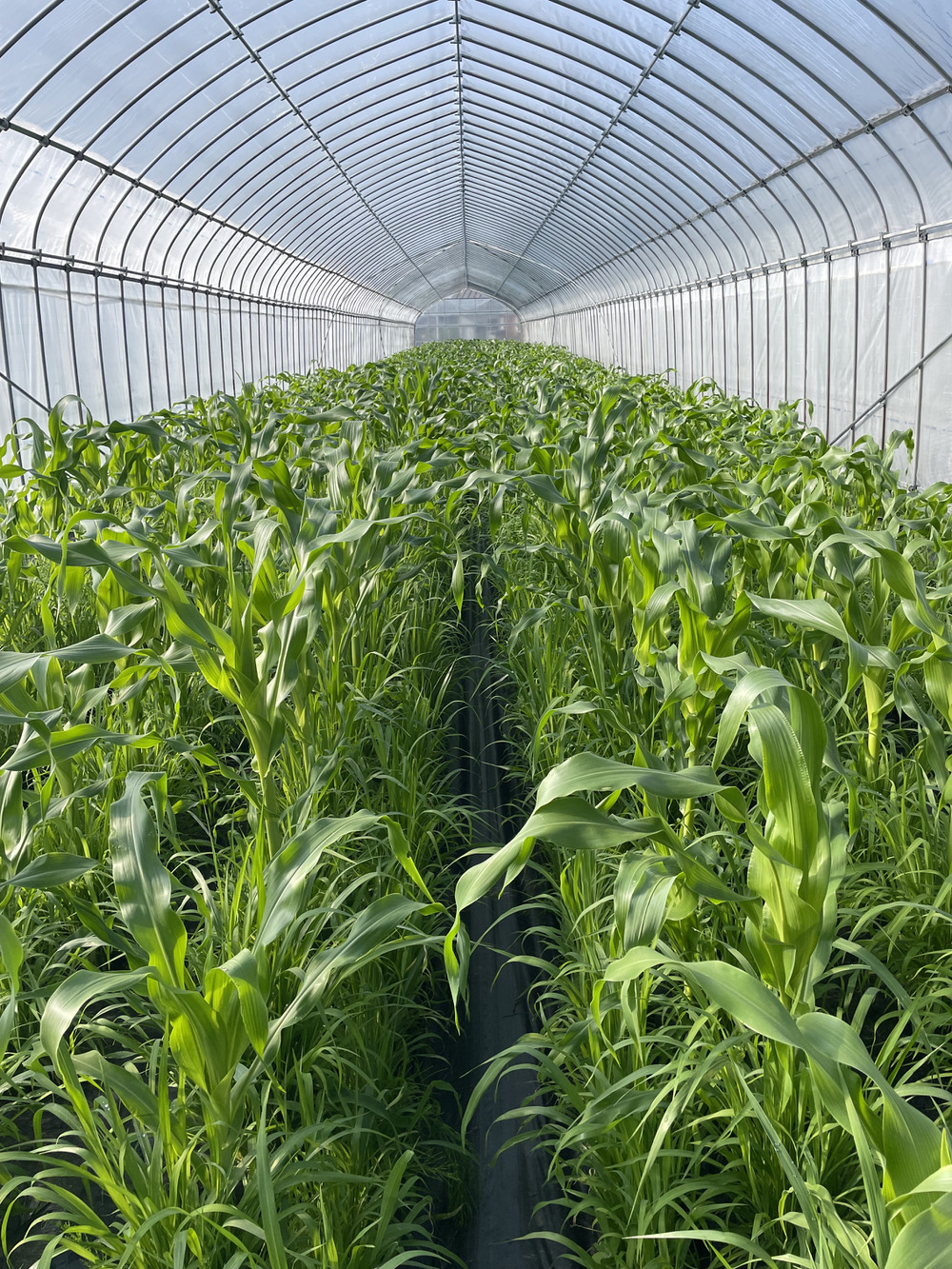 日中も暖かく(暑く??)なり、日に日に生育スピードが増しているように思います。雄蕊(おしべ)が出てきたので、1週間くらいしたら絹糸(めしべ)が出てきて、受粉して実ができます。