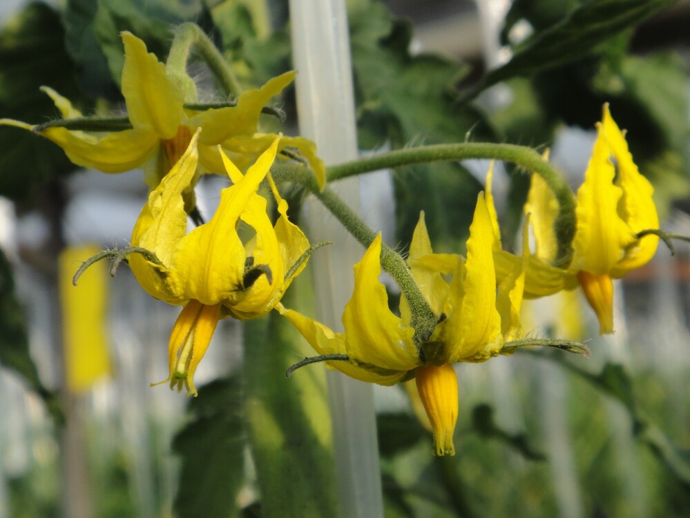 ひまわりとトマトの花の黄色、どちらも良い色です(^^)
