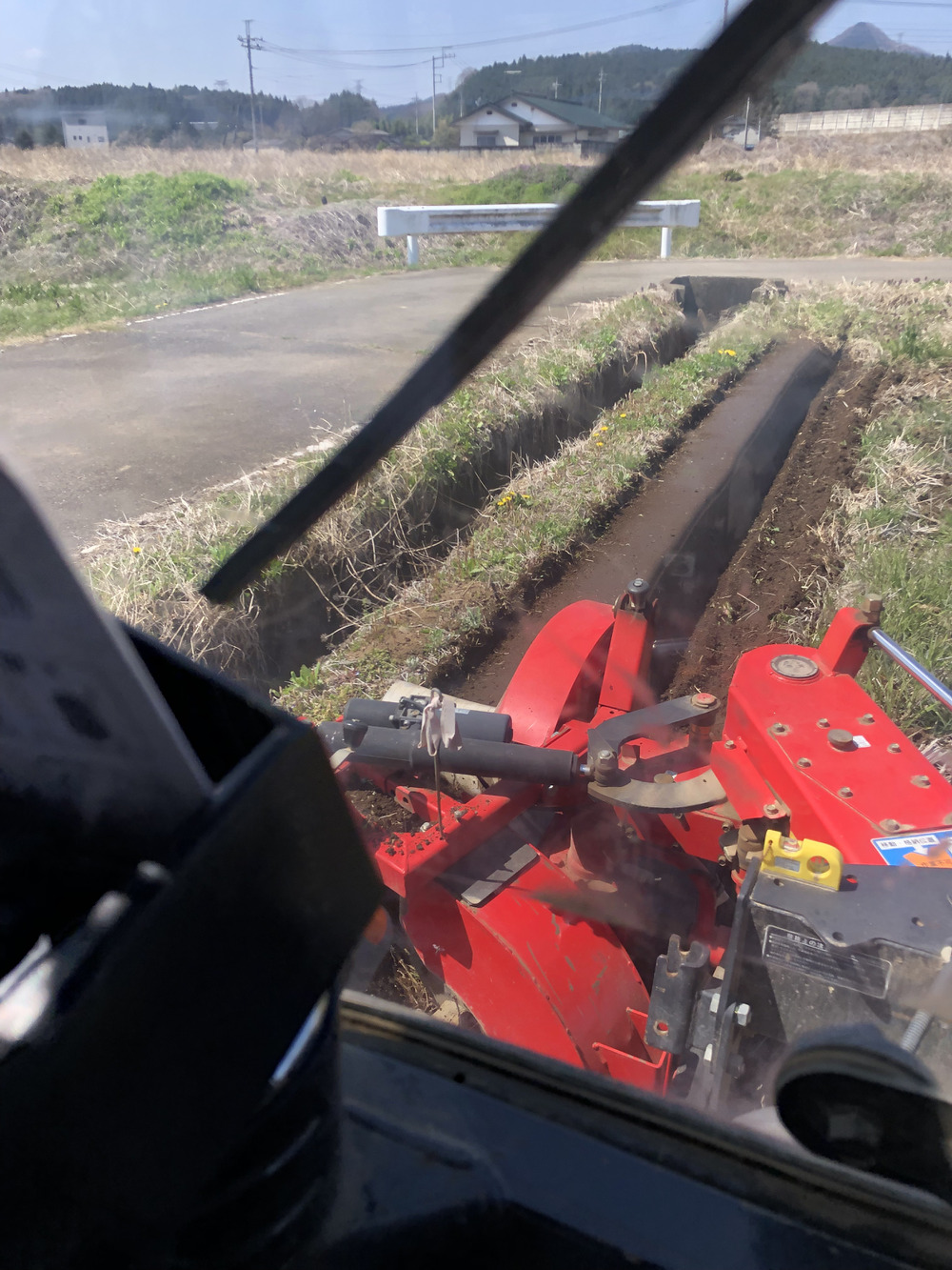 水田に水を入れる準備 畦塗りをしてます
