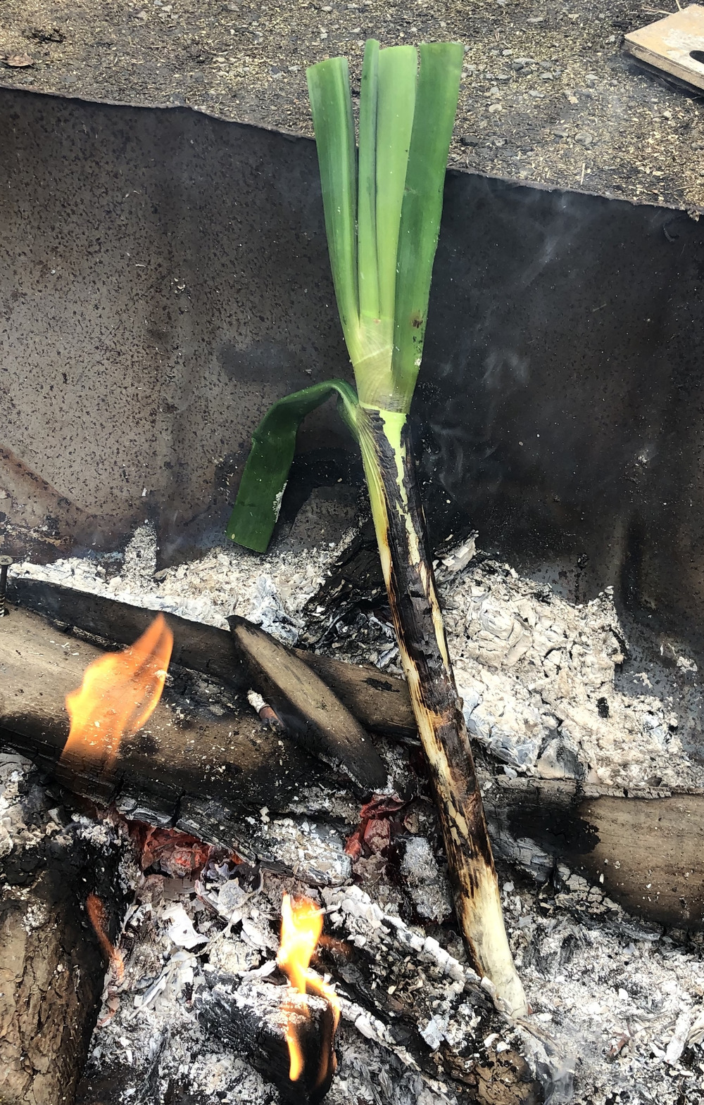 太いネギは直火焼き 焦げた部分は剥いて食す これが最高