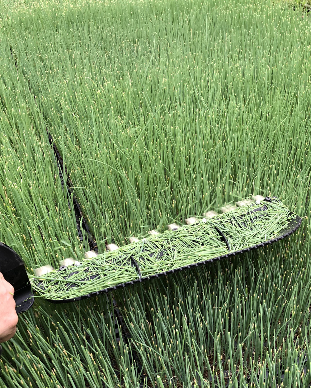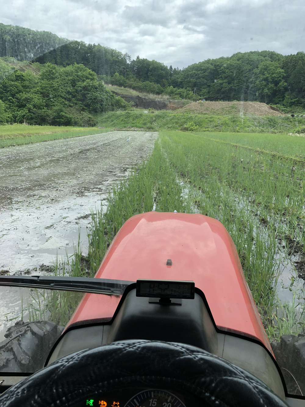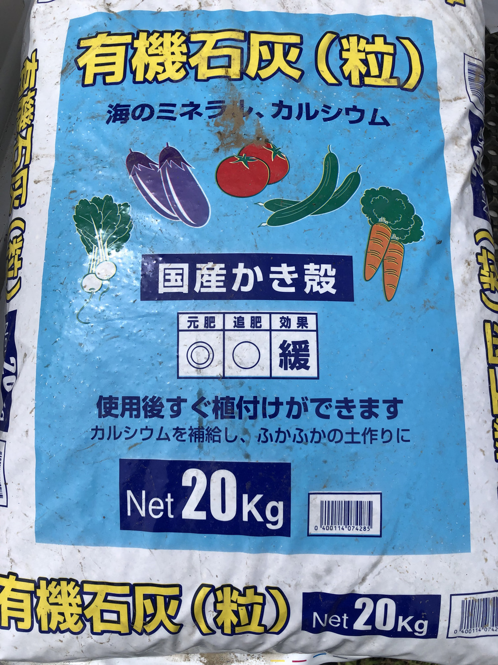 牡蠣殻石灰の他に緑色に見えてるのは 大麦(緑肥)です