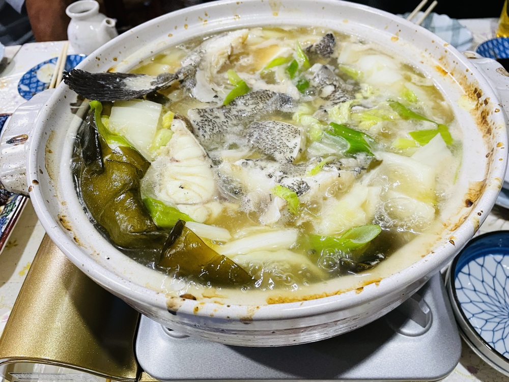 コラーゲンたっぷりのクエのあらから出汁をとり、身がほくほくのクエに最後は雑炊にしました。