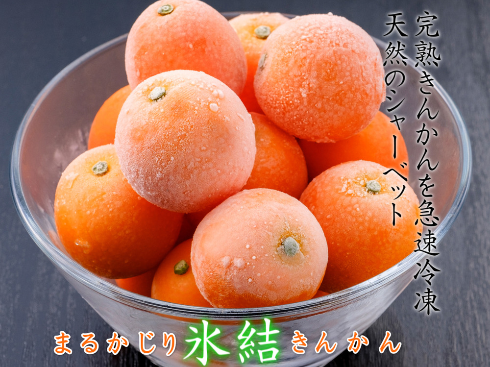 元々糖度が16%以上ある完熟きんかんを冷凍した「氷結きんかん」は、まさに天然のシャーベットです。お好みの固さまで解凍し、皮のまま丸ごと召し上がってください。